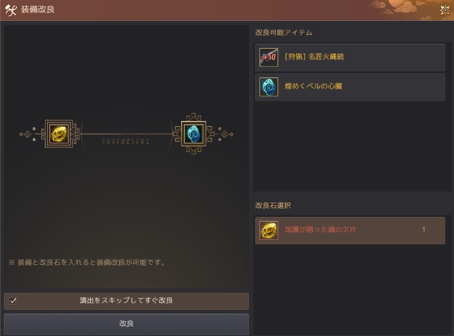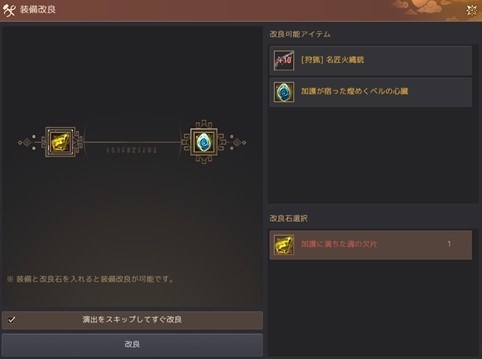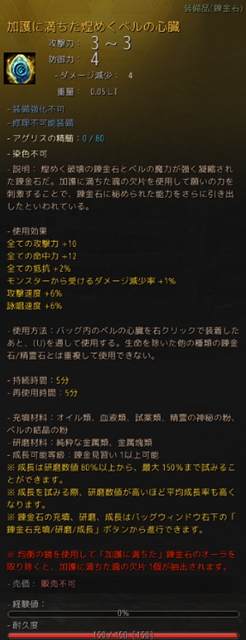 - 加護に満ちた煌めくベルの心臓から均衡の鏡を使用し、「加護が宿った魂の欠片」と「加護に満ちた魂の欠片」の改良を抽出する。