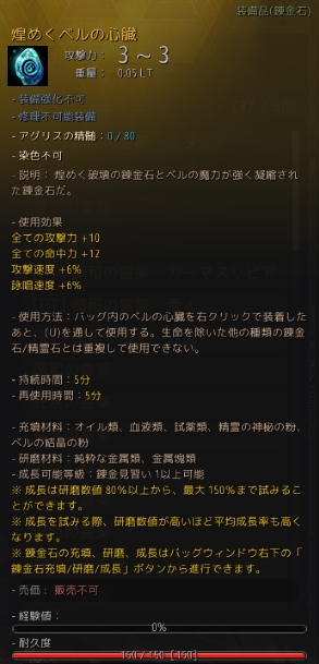- 「煌めく」等級以上の錬金石はベルの心臓/カーンの心臓と組み合わせて使用できるように