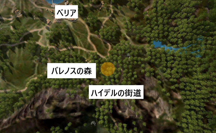 出現する位置はベリア村から南に進んだ「バレノスの森」です。