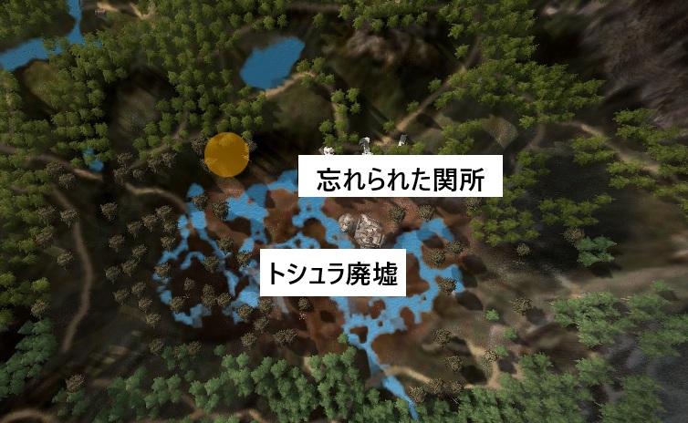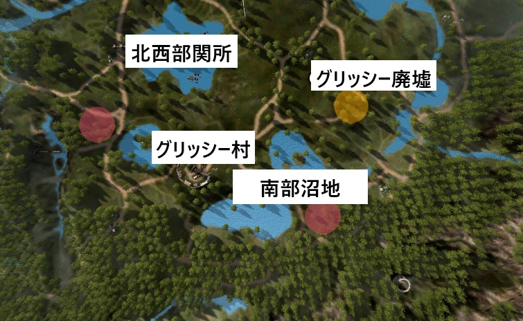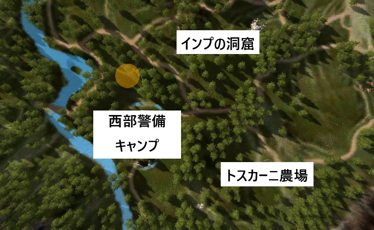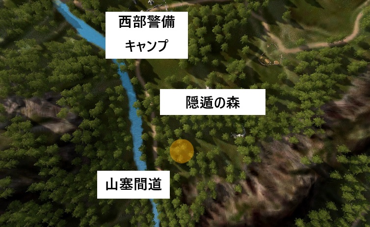 出現位置は西部警備キャンプの南側の「隠遁の森」です。
