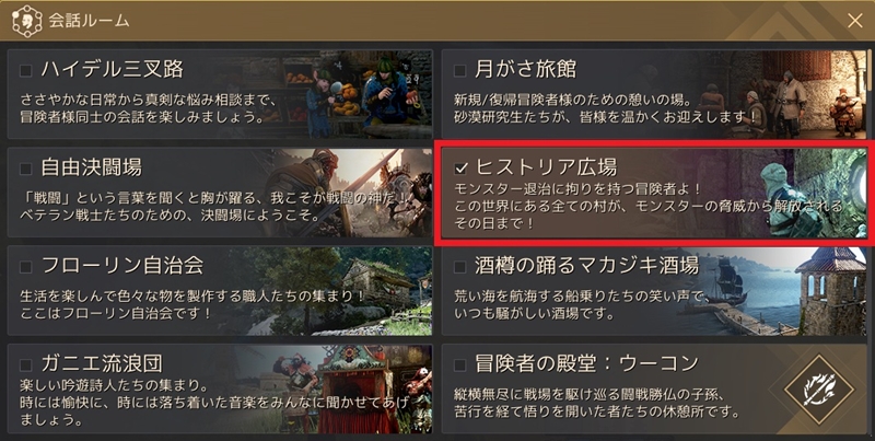 フィールドボスを効率よく討伐するなら、「会話ルーム – ヒストリア」の活用がカギです。