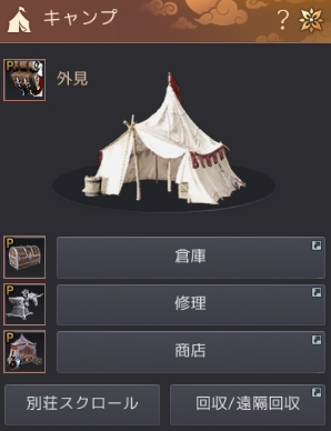 バフを貰うにはキャンプを開いて別荘スクロールから欲しいバフを購入するだけです。