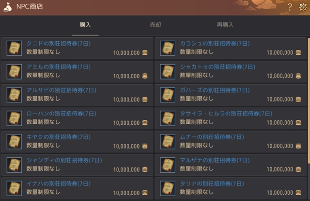 - STEP2<別荘利用受付>NPCから「別荘招待券」を購入する