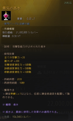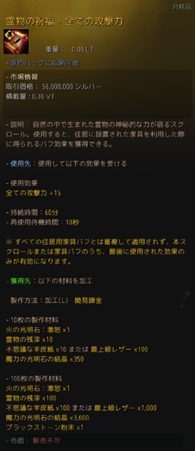 強力な効果を沢山貰えますが価格が高く1時間あたり8000万シルバー消えていくのが中々痛いです。