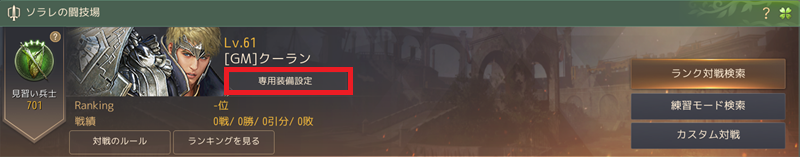 ②ソラレのUIが表示されたら、専用装備設定を開きます。