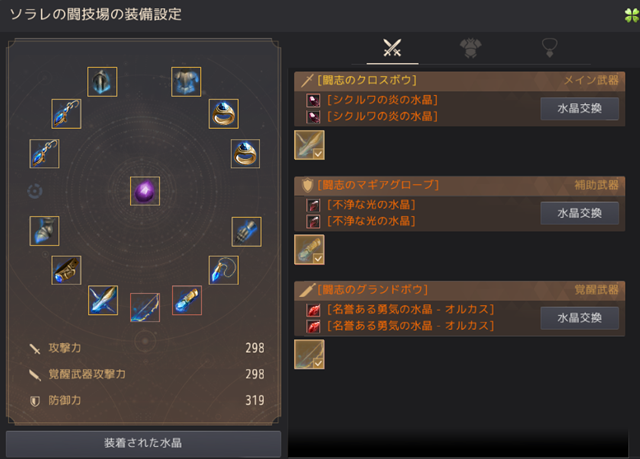 ③装備と水晶を選択します。
