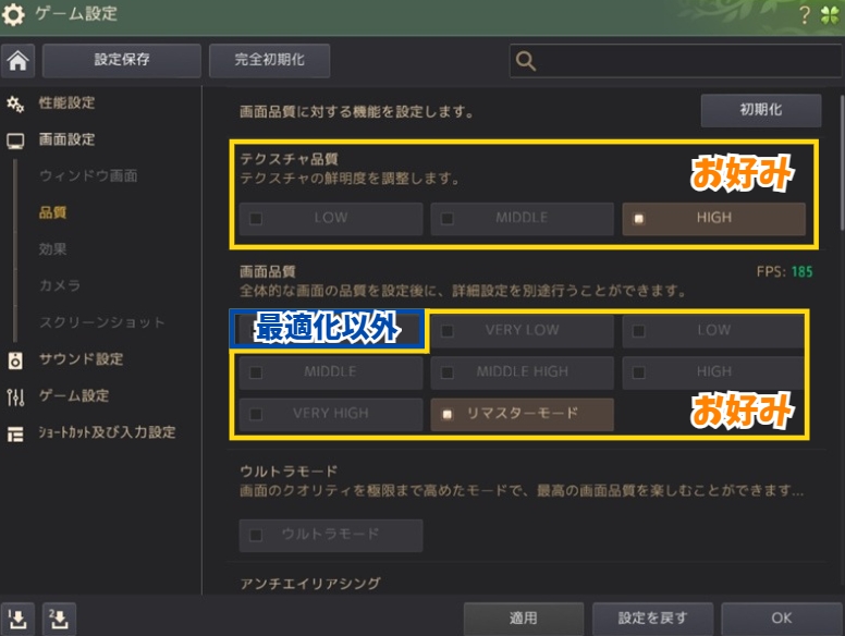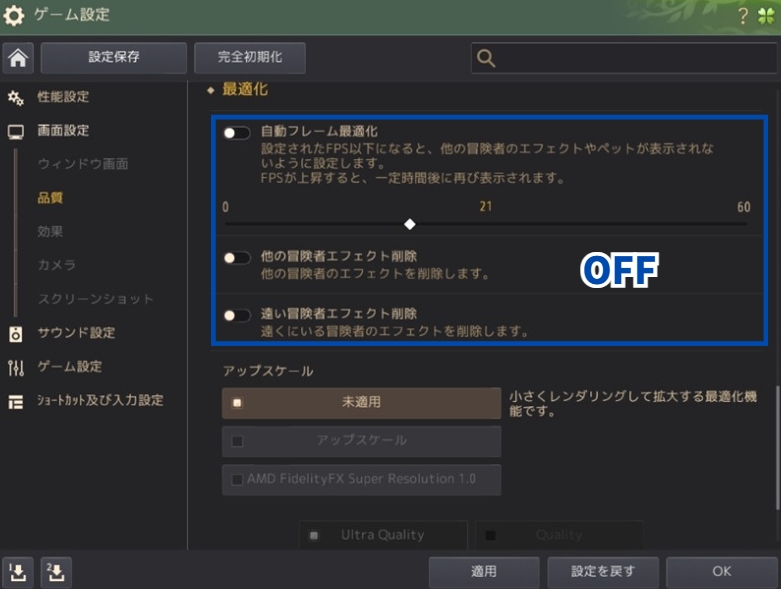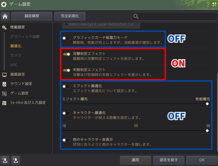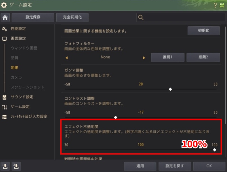 敵の攻撃エフェクトが見えるように適切な設定をしておきましょう。