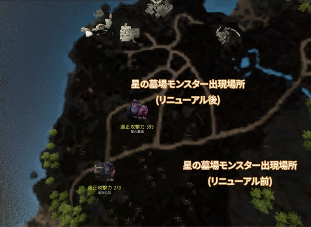 カルフェオン地域依頼の進行のため、既存の「星の墓場」モンスターも一部の地域で出現するよう設定されました。