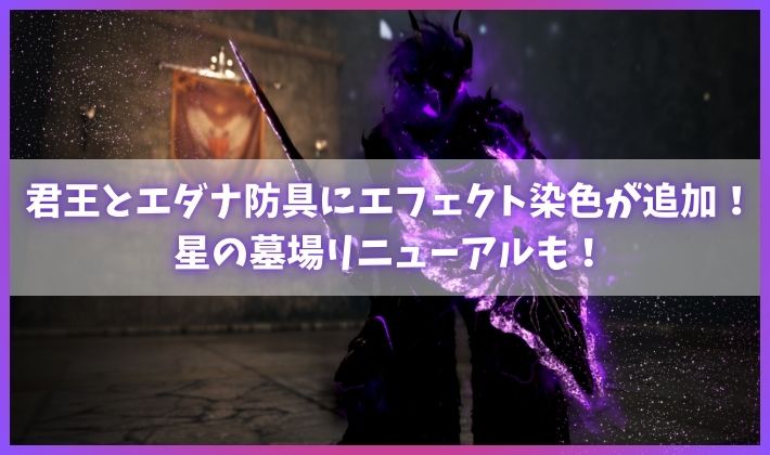 君王とエダナ防具にエフェクト染色がついに追加されました!楽しみでうずうずしているゆめちょこです!