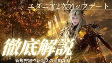 黒い砂漠 【黒い砂漠】エダニア2次アップデートまとめ!新規狩場や新ボスの追加など 2025年9月11日実施の「魔界:エダニア2次アップデート」を徹底解説!新規メインストーリーや冒険日誌、週間ボス討伐、新規狩り場、追加アイテム情報まで、プレイヤー必見の内容をわかりやすく紹介します。 2025.09.11 黒い砂漠