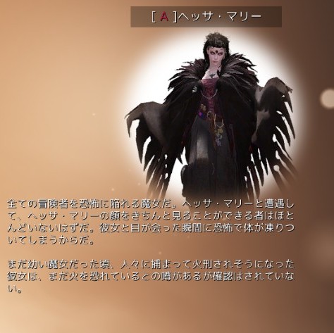 こちらは黒い砂漠のヘッサ・マリー。紅の砂漠より年齢を重ねて大魔女っぽくなっています。