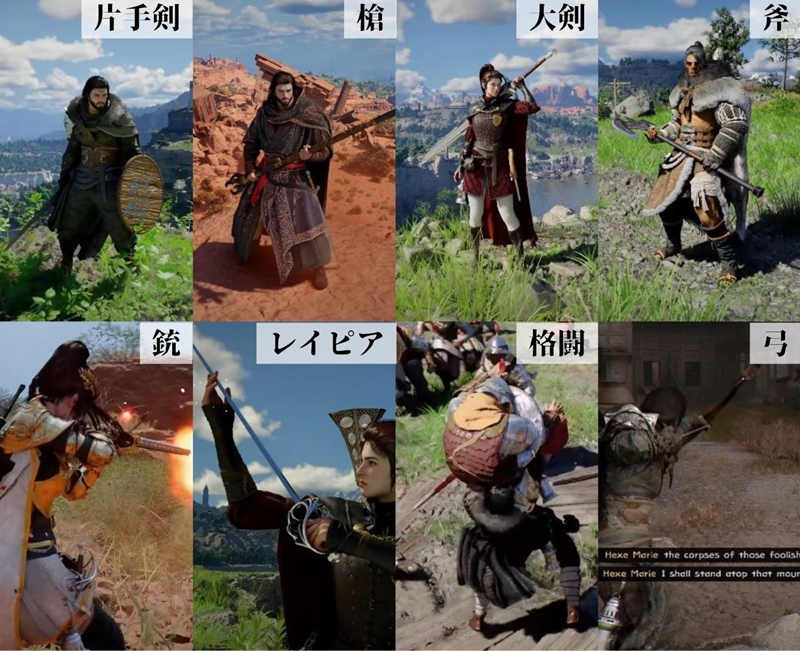 アクション要素として、ジャスト回避やジャストガード、薙ぎ払いといった動作が判明しています。