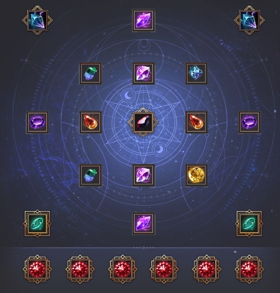 水晶が装着可能なスロットが最大16個あり、水晶の選択肢もかなり多く用意されています。